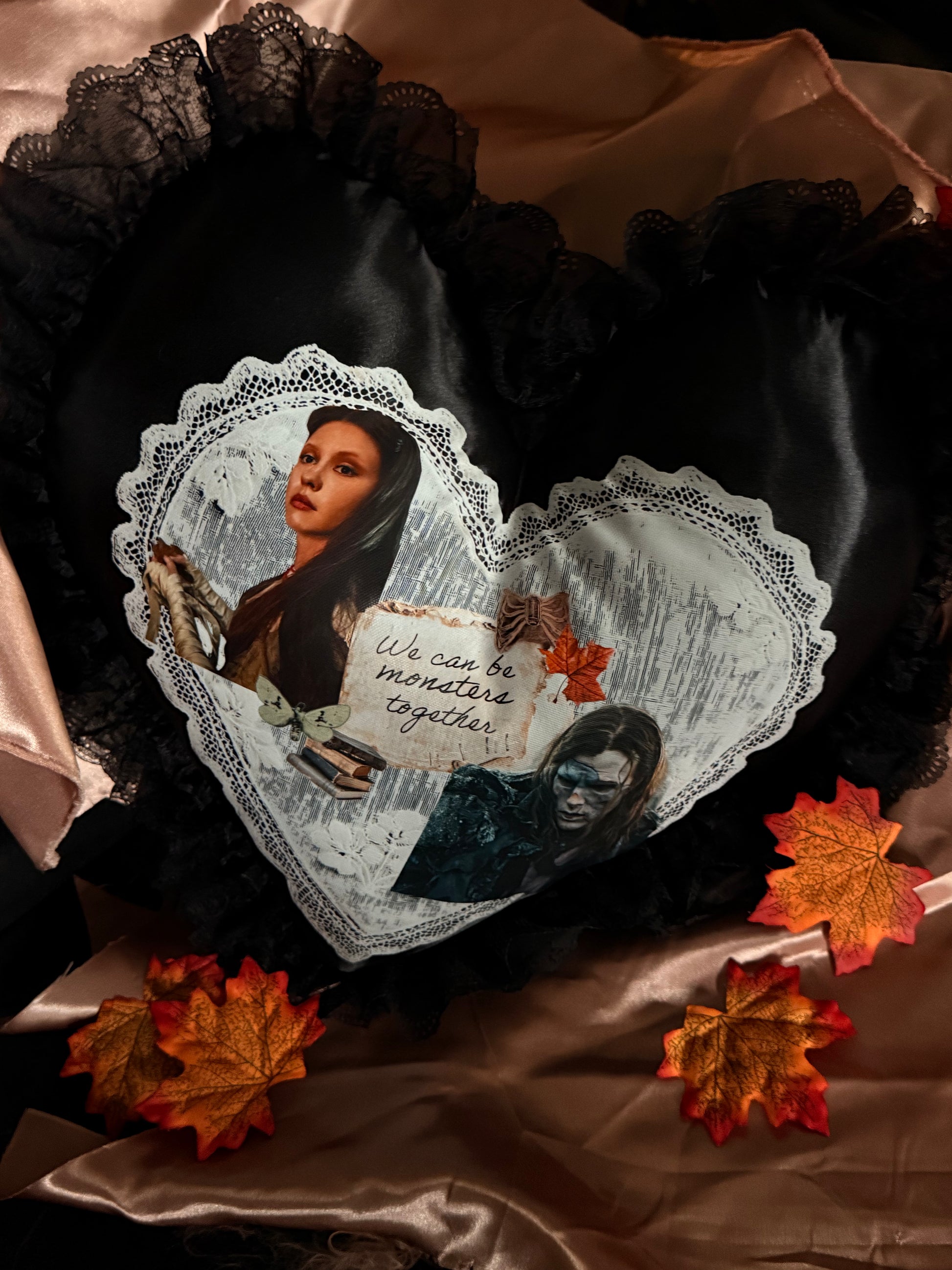 We can be monsters together pillow Embrace your darker side this Valentine's Day with a pillow that celebrates love's wild, untamed nature. Inspired by Frankenstein's tragic romance, this daring design merges gothic elegance with unconventional passion. Perfect for couples who reject traditional sentimentality and revel in their beautifully imperfect bond. A bold statement piece that transforms any bedroom into a sanctuary for misfits and rebels in love.